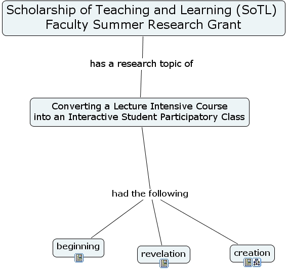 sotl presentation, beginning, creation, revelation, scholarship of teaching and learning (sotl) faculty summer research grant, converting a lecture intensive course into an interactive student participatory class