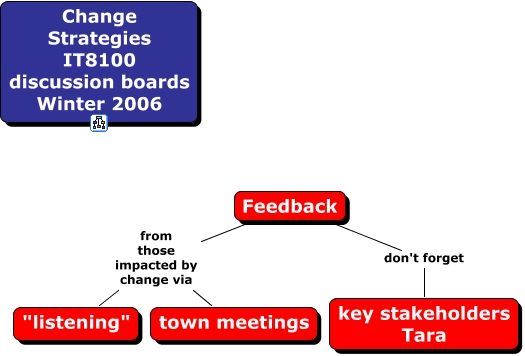 FeedbackonChange, Feedback don't forget key stakeholders Tara, Feedback from those impacted by change via "listening", Feedback from those impacted by change via town meetings