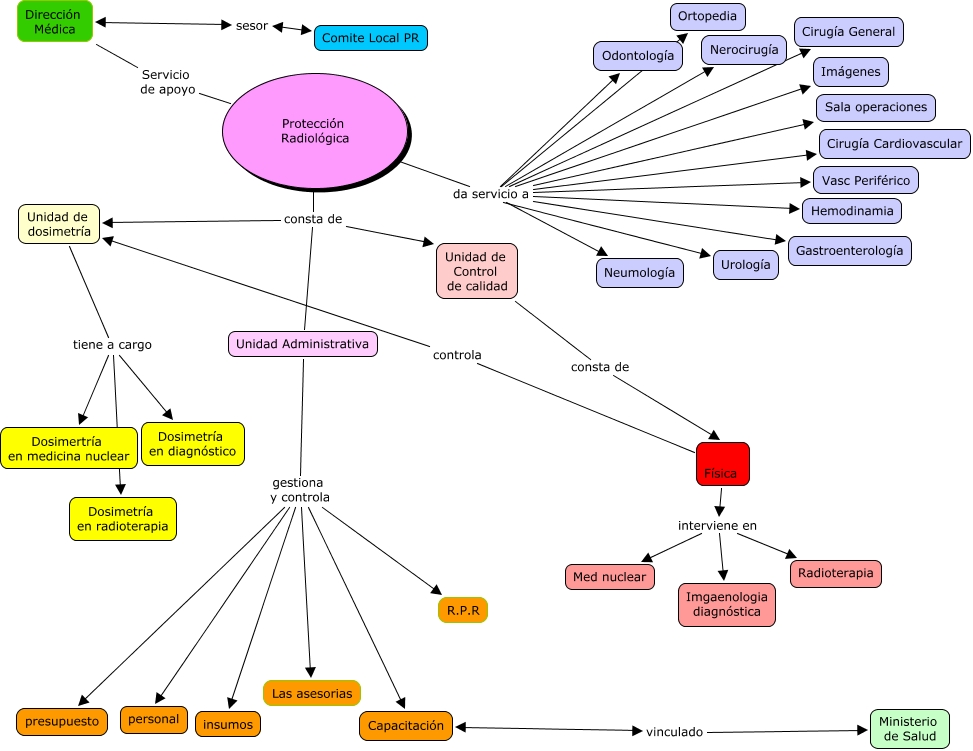 servicio de proteccion radiologica ccss, Protección Radiológica da servicio a Ortopedia, Unidad de dosimetría tiene a cargo Dosimetría en radioterapia, Unidad Administrativa gestiona y controla insumos, Protección Radiológica da servicio a Urología, Protección Radiológica consta de Unidad Administrativa, Protección Radiológica consta de Unidad de Control de calidad, Física controla Unidad de dosimetría, Protección Radiológica da servicio a Gastroenterología, Protección Radiológica da servicio a Imágenes, Protección Radiológica da servicio a Nerocirugía