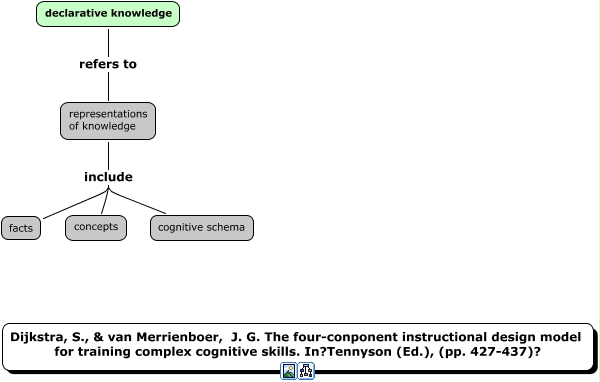 declarative_knowledge_def_Dijkstra_van_Merrienboer_4-componentID_model_Cog, representations of knowledge include cognitive schema, representations of knowledge include concepts, declarative knowledge refers to representations of knowledge, representations of knowledge include facts