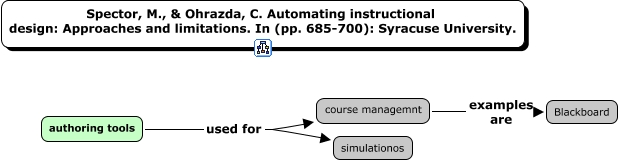 authoringTool_Spector_ohrazda_automating_ID, course managemnt examples are Blackboard, authoring tools used for simulationos, authoring tools used for course managemnt