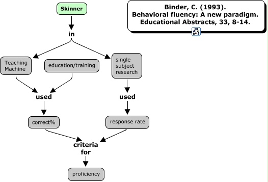 skinner_Binder_BehavioralFluenchy_1993, Skinner in single subject research, Skinner in Teaching Machine, response rate criteria for proficiency, correct% criteria for proficiency, education/training used correct%, Teaching Machine used correct%, single subject research used response rate