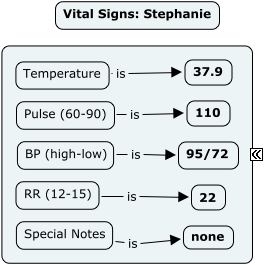 vital signs, Pulse (60-90) is 110, BP (high-low) is 95/72, RR (12-15) is 22, Special Notes is none, Temperature is 37.9