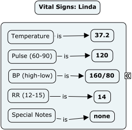 vital signs, Pulse (60-90) is 120, BP (high-low) is 160/80, RR (12-15) is 14, Special Notes is none, Temperature is 37.2