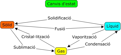 Este Cmap, tiene información relacionada con: canvis, Sòlid Fusió Líquid, Sòlid Sublimació Gas, Líquid Solidificació Sòlid, Líquid Vaporització Gas, Gas Cristal·lització Sòlid, Gas Condensació Líquid