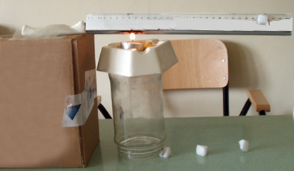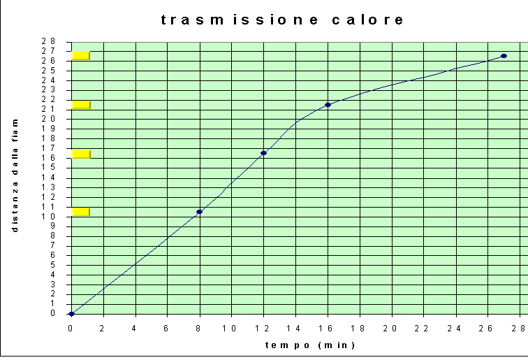 scheda appignano 5� calore-barra 15 05 03, scuola elementare appignano ., allegate mappe, test, verifiche e o altre risorse ., allegate immagini ., classe plesso 5� a b ., metodologie . problem solving discussione con la classe, titolo esperienza - problem solving . trasferimento di energia termica, unita' didattica energia (3) . , mese anno15 5 03, obiettivo verificare come si trasmette il calore all'interno di una barra di metallo costruendo un grafico distanza tempo., risorse professionali . insegnante di classe tutor , abstract (realizzato dai bambini) . abbiamo attaccato 4 pezzetti di cera su un righello di alluminio, annotando la posizione esatta in cm. per posizionare il righello lo abbiamo attaccato ad una scatola, in modo da mettere la candela accesa, come sorgente di calore all'al- tezza di 6 cm. nel frattempo abbiamo costruito un piano cartesiano. sull'asse delle ascisse abbiamo riportato il tempo in minuti, mentre su quello delle ordina- te la distanza dei pezzetti di cera in cm. abbiamo quindi acceso la candela, posi- zionata sotto al righello e, con un orologio, abbiamo cronometrato il tempo neces-a sario per far cadere i pezzetti di cera. abbiamo riportato i dati sul piano cartesiano. il pezzo di cera pi� lontano, a 26 cm dalla fiamma, � caduto dopo 27 minuti. , materiali . righello di alluminio da 30 cm candela bassa pezzetti di cera cubici accendino , tappe precedenti del percorso . esperienze con caldo caldo e cloruro di calcio - acqua , difficolt� - come sono state risolte . invece di utilizzare il ferro da calza, � molto pi� facile attaccare piccoli cubi di cera ad una barra di metallo. come sostenere la barra con la lama di un coltello. una bambina ha chiesto se anche mettendo un cubetto di ghiaccio, il freddo si propagasse come il calore (dal cubetto alla barra). le � stato risposto che il calore si propaga sempre dallo oggetto a temperatura pi� alta (la barra) a quello pi� freddo (il cubetto). quindi tale calore sottratto dalla barra fa fonde- re il ghiaccio., documentalista verena temperini ., allegato diario di bordo, parole chiave trasmissione calore sorgente., insegnante federica marincioni , considerazioni finali (dei bambini) . dalla linea registrata sul diagramma cartesiano abbiamo osservato che il tempo intercorso per fondere e far cadere i 4 pezzetti di cera non � uguale (vedere grafico). da tali osservazioni abbiamo concluso che l'energia sprigionata dalla fiamma si � dispersa in relazione al fatto che l'ultimo pezzetto di cera era ad una maggiore distanza rispetto alla fonte di energia pi� ci si allontana dal centro, pi� l'energia si disperde verso l'alto.