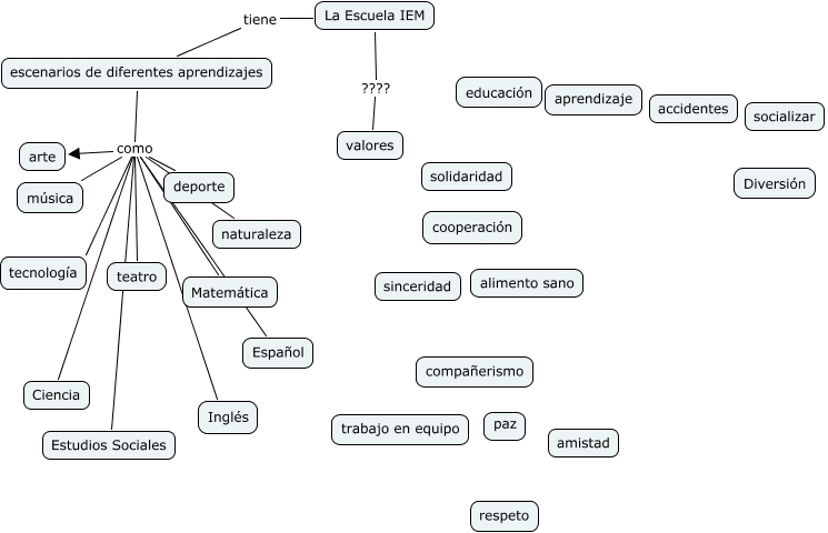 Este Cmap, tiene información relacionada con: ESCUELAIEM, escenarios de diferentes aprendizajes como teatro, escenarios de diferentes aprendizajes como arte, escenarios de diferentes aprendizajes como tecnología, escenarios de diferentes aprendizajes como naturaleza, La Escuela IEM ???? valores, escenarios de diferentes aprendizajes como Inglés, escenarios de diferentes aprendizajes como Ciencia, escenarios de diferentes aprendizajes como deporte, La Escuela IEM tiene escenarios de diferentes aprendizajes, escenarios de diferentes aprendizajes como Estudios Sociales, escenarios de diferentes aprendizajes como Matemática, escenarios de diferentes aprendizajes como Español, escenarios de diferentes aprendizajes como música