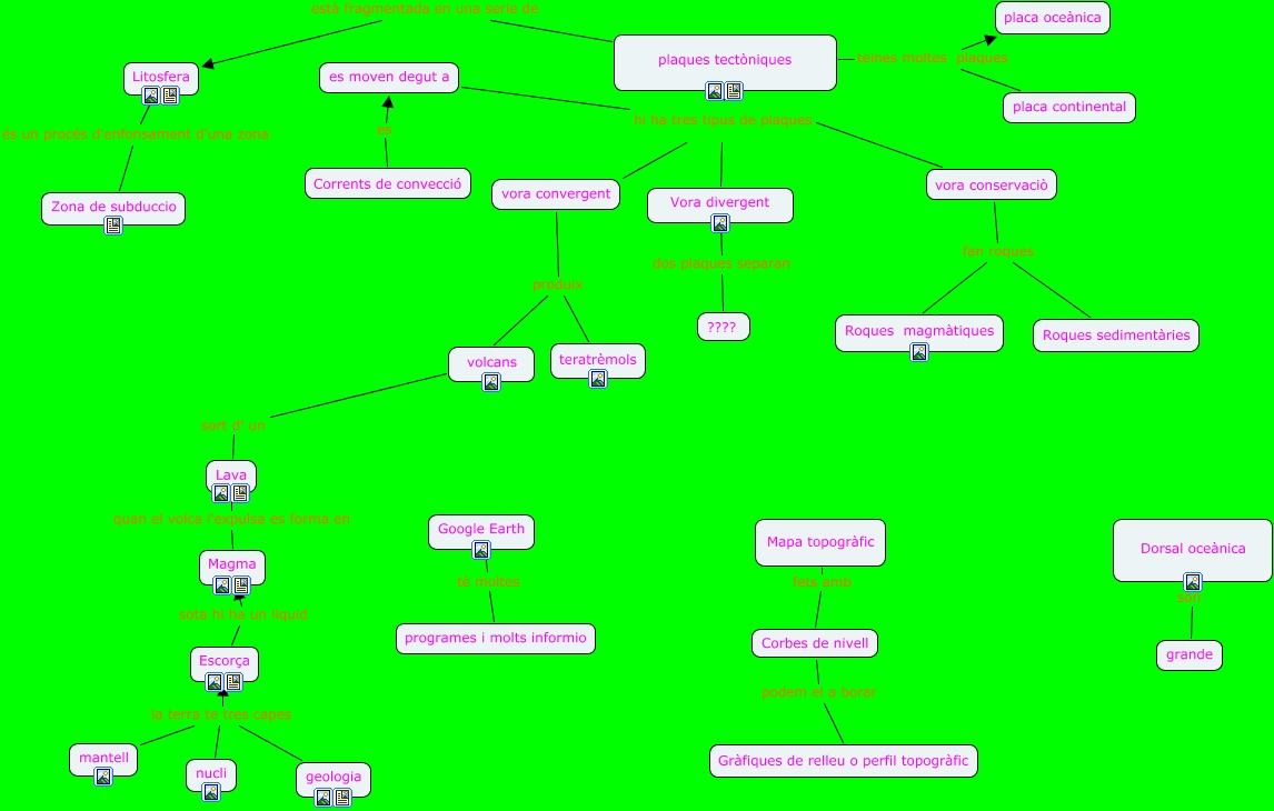 Este mapa conceptual tiene información relacionada a: geologia, volcans sort d' un Lava, vora conservaciò fan roques Roques sedimentàries, plaques tectòniques teines moltes plaques placa continental, Google Earth tè moltes programes i molts informio, Corrents de convecció es es moven degut a, Escorça sota hi ha un liquid Magma, plaques tectòniques teines moltes plaques placa oceànica, vora convergent produix volcans, vora conservaciò hi ha tres tipus de plaques Vora divergent, mantell la terra te tres capes Escorça, plaques tectòniques hi ha tres tipus de plaques Vora divergent, mantell la terra te tres capes nucli, Vora divergent dos plaques separan ????, plaques tectòniques està fragmentada en una serie de Litosfera, vora convergent produix teratrèmols, Mapa topogràfic fets amb Corbes de nivell, vora conservaciò fan roques Roques magmàtiques, es moven degut a hi ha tres tipus de plaques vora convergent, es moven degut a hi ha tres tipus de plaques Vora divergent, vora conservaciò hi ha tres tipus de plaques vora convergent