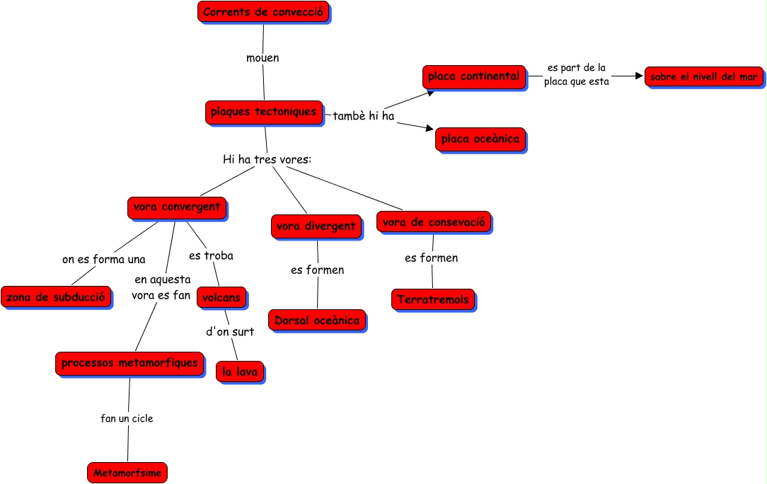 Este Cmap, tiene información relacionada con: mapa de plaques tectoniques, volcans d'on surt la lava, vora convergent on es forma una zona de subducció, plaques tectoniques Hi ha tres vores: vora divergent, plaques tectoniques tambè hi ha placa oceànica, vora divergent es formen Dorsal oceànica, plaques tectoniques tambè hi ha placa continental, vora de consevació es formen Terratremols, processos metamorfiques fan un cicle Metamorfsime, plaques tectoniques Hi ha tres vores: vora convergent, vora convergent en aquesta vora es fan processos metamorfiques, Corrents de convecció mouen plaques tectoniques, placa continental es part de la placa que esta sobre el nivell del mar, vora convergent es troba volcans, plaques tectoniques Hi ha tres vores: vora de consevació