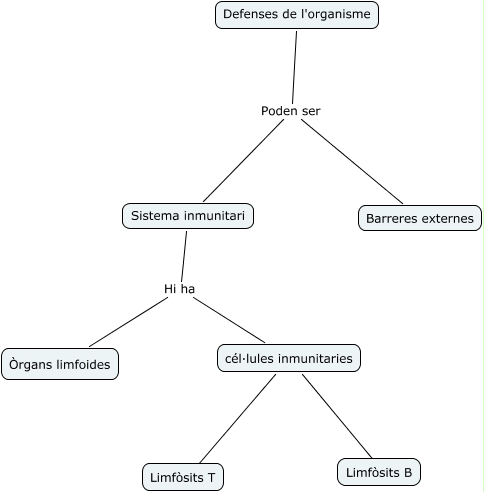 Este Cmap, tiene información relacionada con: Defenses de l'organisme, Sistema inmunitari Hi ha Òrgans limfoides, cél·lules inmunitaries ???? Limfòsits B, cél·lules inmunitaries ???? Limfòsits T, Defenses de l'organisme Poden ser Barreres externes, Sistema inmunitari Hi ha cél·lules inmunitaries, Defenses de l'organisme Poden ser Sistema inmunitari
