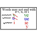1 syl short then consonant.jpg Emglish words may not end in a u_i_v.JPG Every syllable must have a vowel.JPG Floss.JPG K at the beginning.JPG K at the end Rules.JPG Open vowel.jpg Policeman e.JPG
