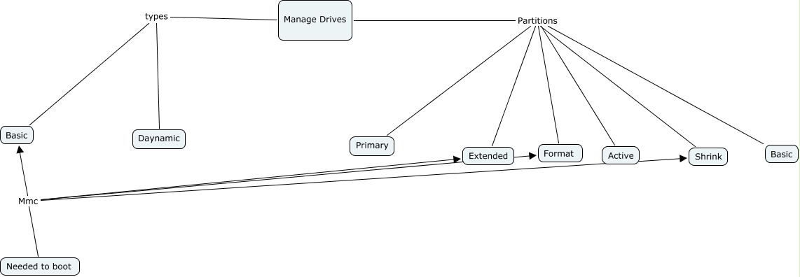 This Concept Map, created with IHMC CmapTools, has information related to: Chapter4-JH, Shrink Partitions Format, Needed to boot Mmc Extended, Needed to boot Mmc Basic, Manage Drives types Basic, Shrink Partitions Basic, Extended Partitions Basic, Needed to boot Mmc Format, Manage Drives Partitions Basic, Manage Drives Partitions Format, Active Partitions Basic, Manage Drives types Daynamic, Active Partitions Primary, Extended Partitions Format, Extended Partitions Primary, Shrink Partitions Primary, Manage Drives Partitions Primary, Needed to boot Mmc Shrink, Active Partitions Format