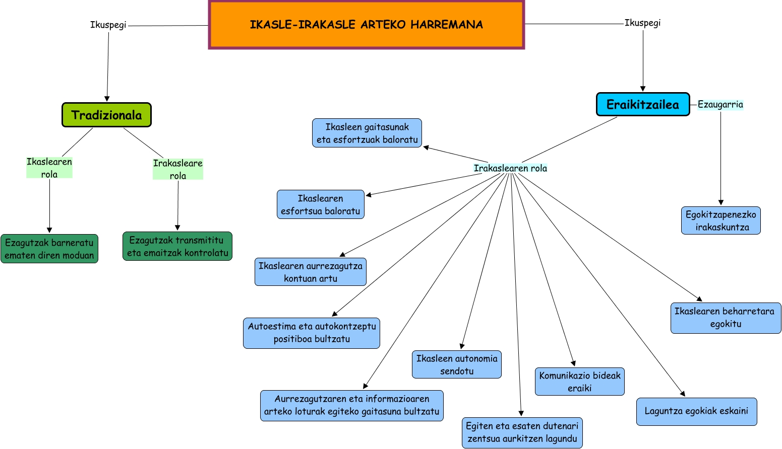 Este Cmap, tiene información relacionada con: Irakasle-ikasle arteko harremana ( Amets, Jone eta Ohian), Eraikitzailea Ezaugarria Egokitzapenezko irakaskuntza, Eraikitzailea Irakaslearen rola Ikasleen autonomia sendotu, Eraikitzailea Irakaslearen rola Ikaslearen aurrezagutza kontuan artu, Eraikitzailea Irakaslearen rola Ikaslearen beharretara egokitu, IKASLE-IRAKASLE ARTEKO HARREMANA Ikuspegi Eraikitzailea, IKASLE-IRAKASLE ARTEKO HARREMANA Ikuspegi Tradizionala, Tradizionala Ikaslearen rola Ezagutzak barneratu ematen diren moduan, Eraikitzailea Irakaslearen rola Autoestima eta autokontzeptu positiboa bultzatu, Eraikitzailea Irakaslearen rola Aurrezagutzaren eta informazioaren arteko loturak egiteko gaitasuna bultzatu, Eraikitzailea Irakaslearen rola Komunikazio bideak eraiki, Tradizionala Irakasleare rola Ezagutzak transmititu eta emaitzak kontrolatu, Eraikitzailea Irakaslearen rola Egiten eta esaten dutenari zentsua aurkitzen lagundu, Eraikitzailea Irakaslearen rola Ikaslearen esfortsua baloratu, Eraikitzailea Irakaslearen rola Laguntza egokiak eskaini, Eraikitzailea Irakaslearen rola Ikasleen gaitasunak eta esfortzuak baloratu