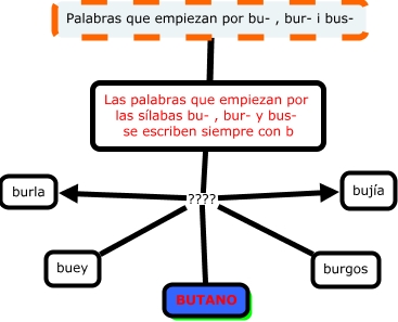 Este Cmap, tiene información relacionada con: Alex Palabras que empiezan por bu- , bur- y bus-, Las palabras que empiezan por las sílabas bu- , bur- y bus- se escriben siempre con b ???? bujía, Palabras que empiezan por bu- , bur- i bus- Las palabras que empiezan por las sílabas bu- , bur- y bus- se escriben siempre con b, Las palabras que empiezan por las sílabas bu- , bur- y bus- se escriben siempre con b ???? burgos, Las palabras que empiezan por las sílabas bu- , bur- y bus- se escriben siempre con b ???? buey, Las palabras que empiezan por las sílabas bu- , bur- y bus- se escriben siempre con b ???? burla, Las palabras que empiezan por las sílabas bu- , bur- y bus- se escriben siempre con b ???? BUTANO