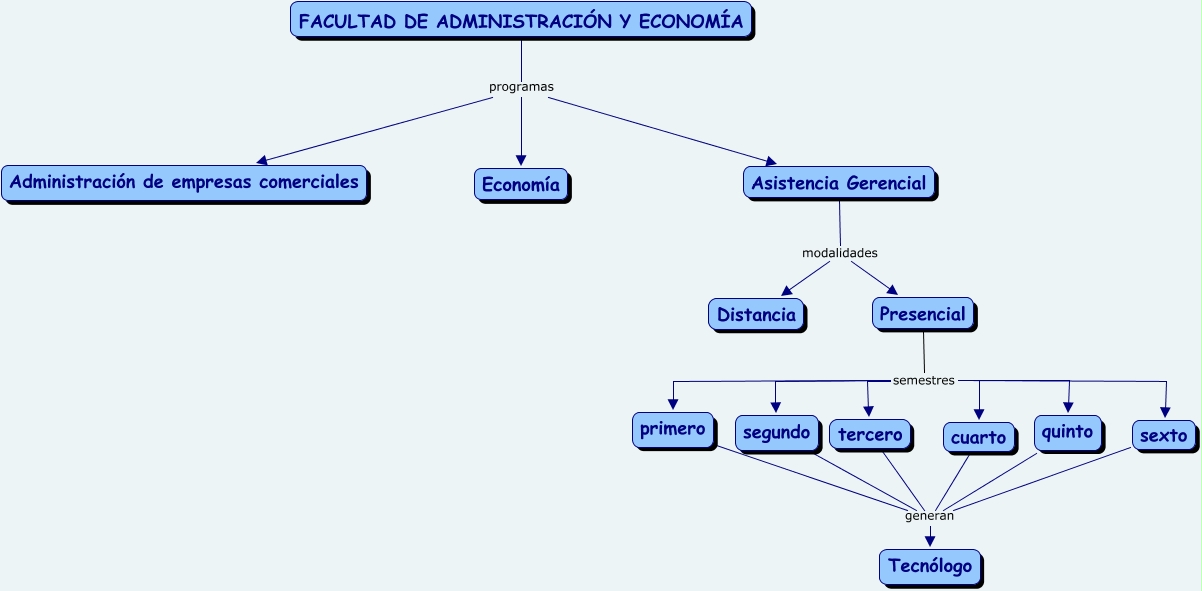 Este Cmap, tiene información relacionada con: Facultad, FACULTAD DE ADMINISTRACIÓN Y ECONOMÍA programas Administración de empresas comerciales, sexto generan Tecnólogo, FACULTAD DE ADMINISTRACIÓN Y ECONOMÍA programas Asistencia Gerencial, quinto generan Tecnólogo, cuarto generan Tecnólogo, Asistencia Gerencial modalidades Distancia, Presencial semestres sexto, Presencial semestres segundo, FACULTAD DE ADMINISTRACIÓN Y ECONOMÍA programas Economía, Presencial semestres cuarto, Presencial semestres primero, tercero generan Tecnólogo, segundo generan Tecnólogo, Presencial semestres quinto, Asistencia Gerencial modalidades Presencial, Presencial semestres tercero, primero generan Tecnólogo