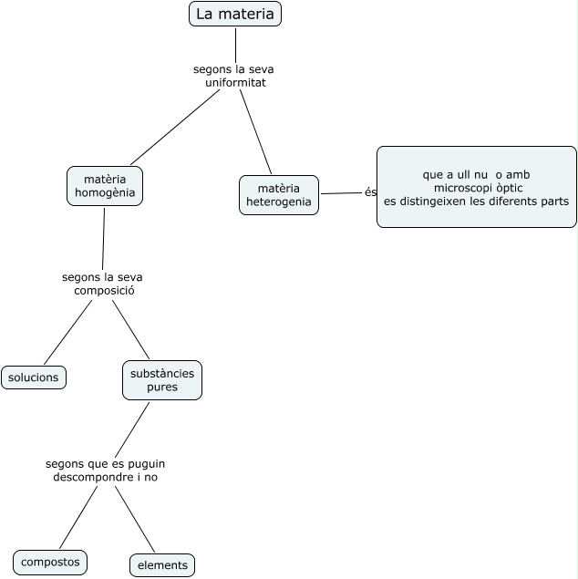 Este Cmap, tiene información relacionada con: la màteria, La materia segons la seva uniformitat matèria homogènia, matèria homogènia segons la seva composició solucions, matèria homogènia segons la seva composició substàncies pures, matèria heterogenia és la que a ull nu o amb microscopi òptic es distingeixen les diferents parts, La materia segons la seva uniformitat matèria heterogenia, substàncies pures segons que es puguin descompondre i no elements, substàncies pures segons que es puguin descompondre i no compostos