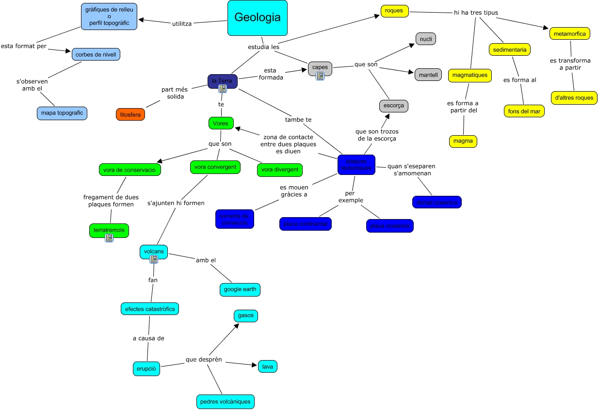 Este Cmap, tiene información relacionada con: geologia, capes que son mantell, vora convergent s'ajunten hi formen volcans, Vores que son vora convergent, plaques tectoniques es mouen gràcies a corrents de conveccio, roques hi ha tres tipus metamorfica, plaques tectoniques quan s'eseparen s'amomenan dorsal oceanica, capes que son escorça, la Terra te Vores, volcans amb el google earth, roques hi ha tres tipus magmatiques, erupció que desprèn gasos, Geologia estudia les roques, sedimentaria es forma al fons del mar, erupció que desprèn pedres volcàniques, la Terra esta formada capes, capes que son nucli, efectes catastròfics a causa de erupció, Vores que son vora divergent, magmatiques es forma a partir del magma, metamorfica es transforma a partir d'altres roques