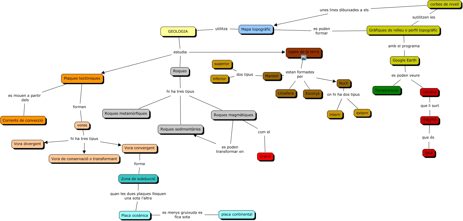 Este Cmap, tiene información relacionada con: Geologia, Mantell dos tipus inferior, Mapa topogràfic es poden formar Gràfiques de relleu o perfil topogràfic, GEOLOGIA utilitza Mapa topogràfic, magma que és lava, GEOLOGIA estudia capes de la terra, Roques magmàtiques es poden transformar en Roques sedimentàries, volcans que li surt magma, Nucli on hi ha dos tipus extern, vores hi ha tres tipus Vora convergent, vores hi ha tres tipus Vora divergent, capes de la terra estan formades per Nucli, Placa oceànica es menys gruixuda es fica sota placa continental, Gràfiques de relleu o perfil topogràfic sutilitzen les corbes de nivell, capes de la terra estan formades per Litosfera, Mantell dos tipus superior, Plaques tectòniques es mouen a partir dels Corrents de convecció, Roques magmàtiques com el Granit, GEOLOGIA estudia Plaques tectòniques, capes de la terra estan formades per Mantell, Gràfiques de relleu o perfil topogràfic amb el programa Google Earth
