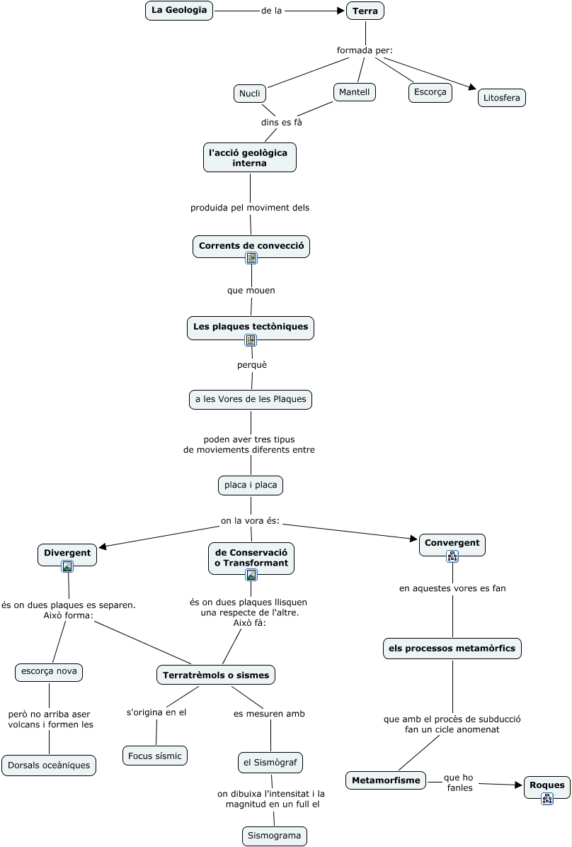 Este Cmap, tiene información relacionada con: mapa de geologia, Terra formada per: Escorça, Nucli dins es fà l'acció geològica interna, el Sismògraf on dibuixa l'intensitat i la magnitud en un full el Sismograma, a les Vores de les Plaques poden aver tres tipus de moviements diferents entre placa i placa, placa i placa on la vora és: Divergent, La Geologia de la Terra, Divergent és on dues plaques es separen. Això forma: escorça nova, Les plaques tectòniques perquè a les Vores de les Plaques, Corrents de convecció que mouen Les plaques tectòniques, de Conservació o Transformant és on dues plaques llisquen una respecte de l'altre. Això fà: Terratrèmols o sismes, Terra formada per: Litosfera, placa i placa on la vora és: de Conservació o Transformant, Terra formada per: Mantell, els processos metamòrfics que amb el procès de subducció fan un cicle anomenat Metamorfisme, l'acció geològica interna produida pel moviment dels Corrents de convecció, Terratrèmols o sismes s'origina en el Focus sísmic, escorça nova però no arriba aser volcans i formen les Dorsals oceàniques, Divergent és on dues plaques es separen. Això forma: Terratrèmols o sismes, Mantell dins es fà l'acció geològica interna, placa i placa on la vora és: Convergent