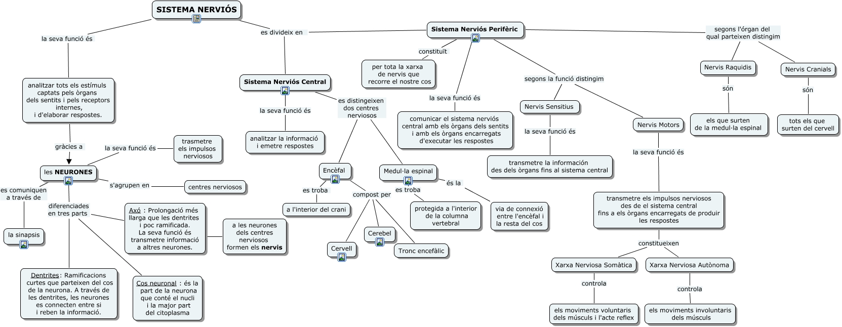 Este Cmap, tiene información relacionada con: Sistema Nerviós, analitzar tots els estímuls captats pels òrgans dels sentits i pels receptors internes, i d'elaborar respostes. gràcies a les NEURONES, Medul·la espinal es troba protegida a l'interior de la columna vertebral, transmetre els impulsos nerviosos des de el sistema central fins a els òrgans encarregats de produir les respostes constitueixen Xarxa Nerviosa Somàtica, Xarxa Nerviosa Autònoma controla els moviments involuntaris dels músculs, SISTEMA NERVIÓS la seva funció és analitzar tots els estímuls captats pels òrgans dels sentits i pels receptors internes, i d'elaborar respostes., Sistema Nerviós Perifèric segons l'órgan del qual parteixen distingim Nervis Raquidis, Sistema Nerviós Central la seva funció és analitzar la informació i emetre respostes, les NEURONES diferenciades en tres parts Axó : Prolongació més llarga que les dentrites i poc ramificada. La seva funció és transmetre informació a altres neurones., Sistema Nerviós Perifèric constituït per tota la xarxa de nervis que recorre el nostre cos, Encèfal compost per Cerebel, les NEURONES diferenciades en tres parts Cos neuronal : és la part de la neurona que conté el nucli i la major part del citoplasma, les NEURONES diferenciades en tres parts Dentrites: Ramificacions curtes que parteixen del cos de la neurona. A través de les dentrites, les neurones es connecten entre si i reben la informació., Nervis Motors la seva funció és transmetre els impulsos nerviosos des de el sistema central fins a els òrgans encarregats de produir les respostes, Sistema Nerviós Central es distingeixen dos centres nerviosos Encèfal, Xarxa Nerviosa Somàtica controla els moviments voluntaris dels músculs i l'acte reflex, Sistema Nerviós Central es distingeixen dos centres nerviosos Medul·la espinal, Encèfal compost per Cervell, les NEURONES es comuniquen a través de la sinapsis, SISTEMA NERVIÓS es divideix en Sistema Nerviós Central, SISTEMA NERVIÓS es divideix en Sistema Nerviós Perifèric