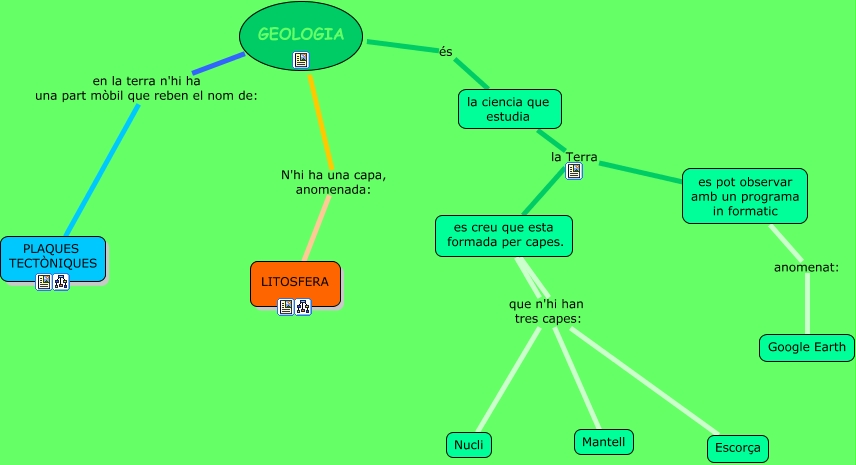 Este Cmap, tiene información relacionada con: geologia, GEOLOGIA és la ciencia que estudia, es pot observar amb un programa in formatic anomenat: Google Earth, GEOLOGIA N'hi ha una capa, anomenada: LITOSFERA, la ciencia que estudia la Terra es creu que esta formada per capes., es creu que esta formada per capes. que n'hi han tres capes: Nucli, la ciencia que estudia la Terra es pot observar amb un programa in formatic, es creu que esta formada per capes. que n'hi han tres capes: Mantell, GEOLOGIA en la terra n'hi ha una part mòbil que reben el nom de: PLAQUES TECTÒNIQUES, es creu que esta formada per capes. que n'hi han tres capes: Escorça, es creu que esta formada per capes. que n'hi han tres capes: Mantell, es creu que esta formada per capes. que n'hi han tres capes: Escorça, es creu que esta formada per capes. que n'hi han tres capes: Nucli