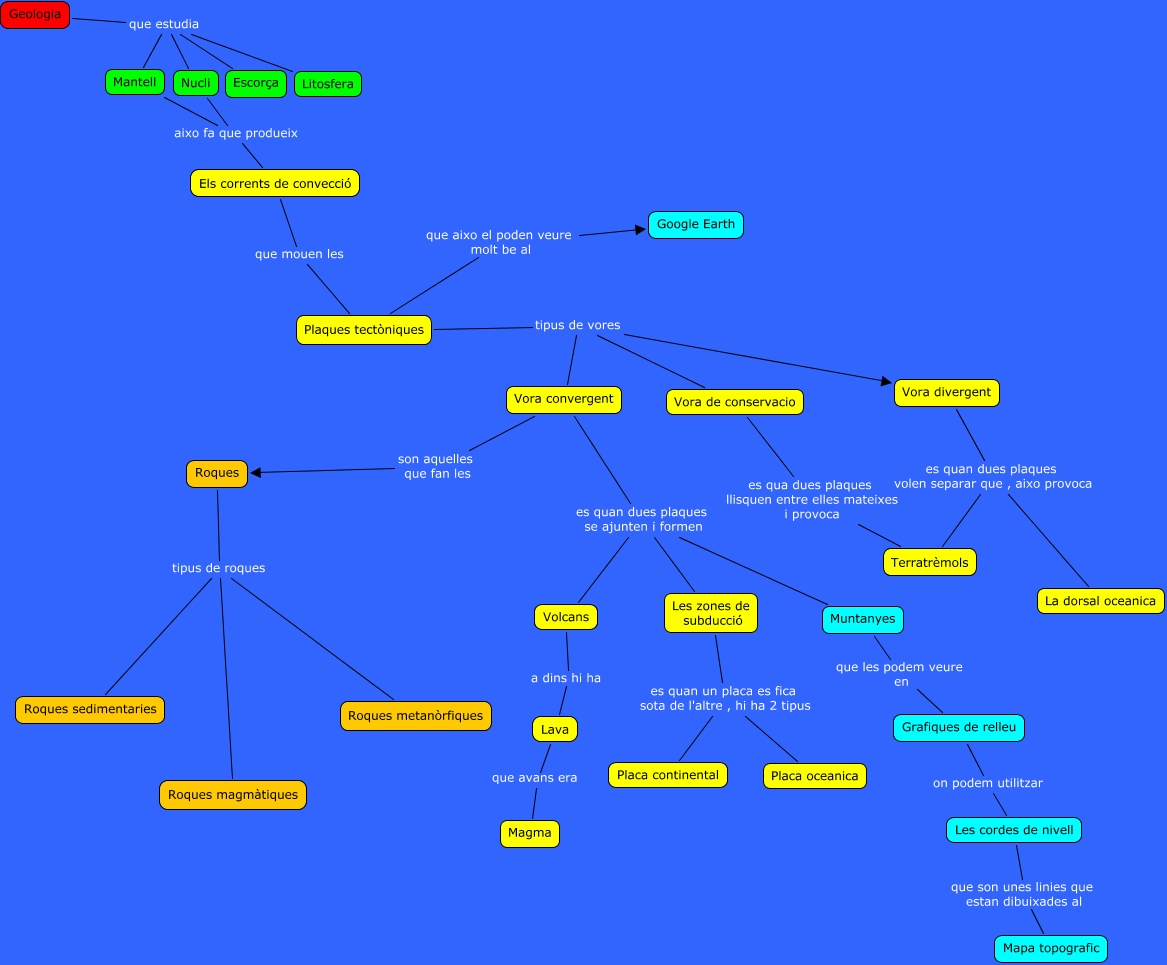 Este Cmap, tiene información relacionada con: geologia, Nucli aixo fa que produeix Els corrents de convecció, Plaques tectòniques tipus de vores Vora de conservacio, Vora convergent es quan dues plaques se ajunten i formen Volcans, Vora divergent es quan dues plaques volen separar que , aixo provoca La dorsal oceanica, Els corrents de convecció que mouen les Plaques tectòniques, Roques tipus de roques Roques magmàtiques, Lava que avans era Magma, Les zones de subducció es quan un placa es fica sota de l'altre , hi ha 2 tipus Placa continental, Plaques tectòniques tipus de vores Vora divergent, Plaques tectòniques tipus de vores Vora convergent, Volcans a dins hi ha Lava, Muntanyes que les podem veure en Grafiques de relleu, Les zones de subducció es quan un placa es fica sota de l'altre , hi ha 2 tipus Placa oceanica, Vora convergent es quan dues plaques se ajunten i formen Les zones de subducció, Geologia que estudia Nucli, Roques tipus de roques Roques sedimentaries, Vora divergent es quan dues plaques volen separar que , aixo provoca Terratrèmols, Geologia que estudia Mantell, Mantell aixo fa que produeix Els corrents de convecció, Plaques tectòniques que aixo el poden veure molt be al Google Earth