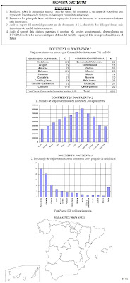 • L’Estat espanyol exporta serveis, en els quals disposa d’infrastructures tècniques i organitzatives favorables per fer una oferta atractiva que genere ingressos importants. Això és el que passa amb el turisme, pel qual, gràcies als atractius naturals, l’estructura hotelera i la millora dels transports, el país ingressa una quantitat elevada de divises que han servit per equilibrar la balança de pagaments, per importar béns necessaris en altres sectors productius i per impulsar i modernitzar l’estructura socioeconòmica de les principals àrees i regions turístiques.