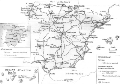 • A la resta del territori de l’Estat dominen els serveis no destinats a la venda, sovint d’escassa qualificació, administratius de segon ordre, comercials d’àmbit petit i assistencials de caràcter públic. Òbviament, a escala provincial i local hi ha excepcions, com passa amb l’alta especialització turística d’algunes comarques d’Andalusia.
