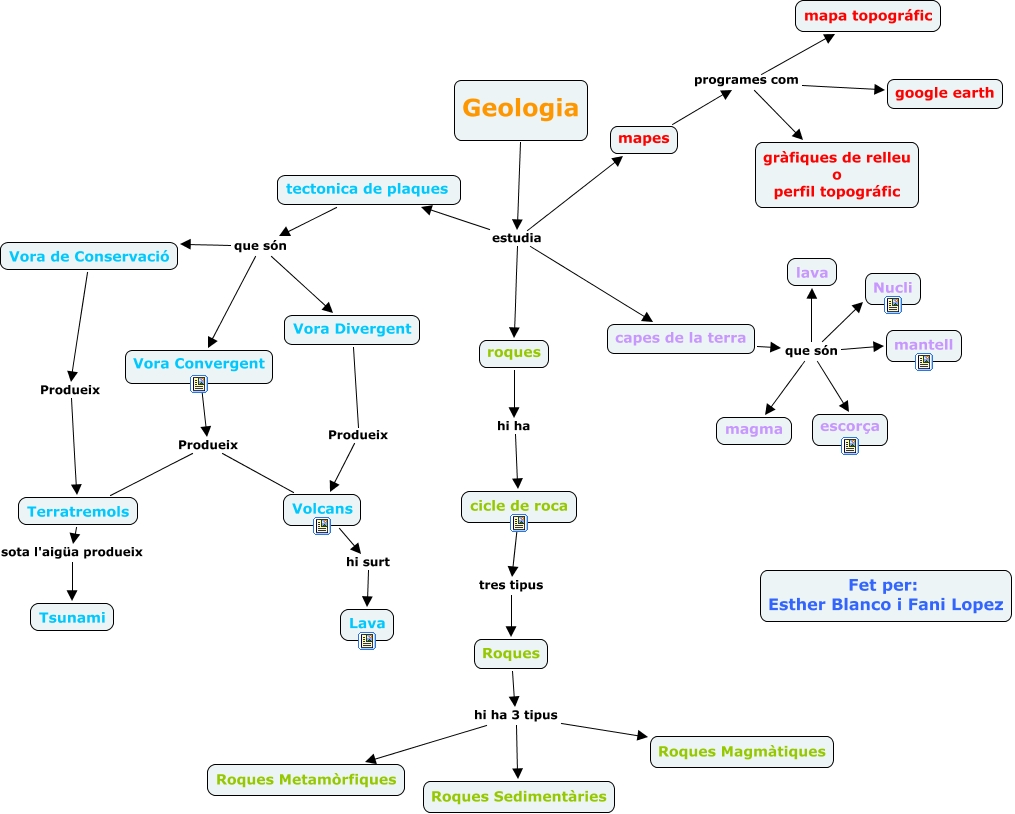 Este mapa conceptual tiene información relacionada a: geologia, roques hi ha cicle de roca, Geologia estudia tectonica de plaques, capes de la terra que són magma, tectonica de plaques que són Vora Divergent, Vora Divergent Produeix Volcans, Roques hi ha 3 tipus Roques Magmàtiques, Vora Convergent Produeix Volcans, Vora de Conservació Produeix Terratremols, mapes programes com google earth, mapes programes com mapa topográfic, Terratremols sota l'aigüa produeix Tsunami, capes de la terra que són mantell, Vora Convergent Produeix Terratremols, cicle de roca tres tipus Roques, Geologia estudia mapes, Geologia estudia roques, Volcans hi surt Lava, capes de la terra que són Nucli, capes de la terra que són escorça, tectonica de plaques que són Vora de Conservació