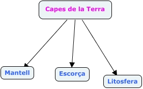Aquest mapa conceptual conté informació relacionada amb: Capes de la Terra, Capes de la Terra ???? Escorça, Capes de la Terra ???? Mantell, Capes de la Terra ???? Litosfera
