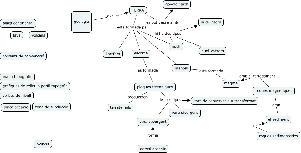 Este Cmap, tiene información relacionada con: geologia, plaques tectoniques de tres tipos vora covergent, roques sedimentaries y el sediment, TERRA esta formada per escorça, TERRA esta formada per litosfera, TERRA esta formada per nucli, plaques tectoniques de tres tipos vora divergent, TERRA esta formada per mantell, plaques tectoniques produeixen terratemols, plaques tectoniques de tres tipos vora de conservacio o transformat, geologia explica TERRA, nucli hi ha dos tipos nucli intern, roques magnetiques amb el sediment, roques magnetiques amb el refredament magma, mantell esta formada magma, TERRA es pot veure amb google earth, nucli hi ha dos tipos nucli extrem, escorça es formada plaques tectoniques, dorsal oceanic forma vora covergent
