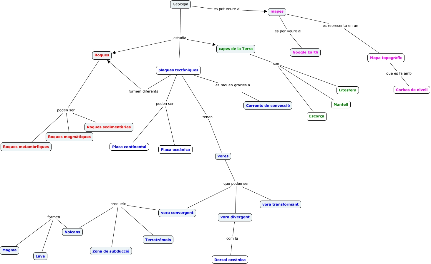 Este Cmap, tiene información relacionada con: geologia 1, vora convergent produeix Zona de subducció, vores que poden ser vora divergent, Roques poden ser Roques metamòrfiques, vores que poden ser vora convergent, capes de la Terra son Mantell, Geologia estudia capes de la Terra, mapes es representa en un Mapa topogràfic, Geologia es pot veure al mapes, plaques tectòniques formen diferents Roques, plaques tectòniques poden ser Placa oceànica, capes de la Terra son Escorça, plaques tectòniques es mouen gracies a Corrents de convecció, vores que poden ser vora transformant, mapes es por veure al Google Earth, Mapa topogràfic que es fa amb Corbes de nivell, plaques tectòniques tenen vores, Roques poden ser Roques sedimentàries, plaques tectòniques poden ser Placa continental, Roques poden ser Roques magmàtiques, Geologia estudia plaques tectòniques