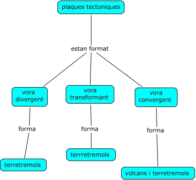 Este Cmap, tiene información relacionada con: Plaques tetoniques, vora transformant forma terrretremols, plaques tectoniques estan format vora divergent, plaques tectoniques estan format vora transformant, plaques tectoniques estan format vora convergent, vora divergent forma terretremols, vora convergent forma volcans i terretremols