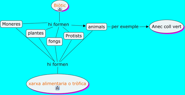 Este Cmap, tiene información relacionada con: Biòtic, fongs hi formen xarxa alimentaria o tròfica, animals hi formen xarxa alimentaria o tròfica, Moneres hi formen fongs, Moneres hi formen Protists, Moneres hi formen plantes, Biòtic hi formen animals, Moneres hi formen xarxa alimentaria o tròfica, Biòtic hi formen plantes, Moneres hi formen animals, plantes hi formen xarxa alimentaria o tròfica, Protists hi formen xarxa alimentaria o tròfica, Biòtic hi formen fongs, animals per exemple Anec coll vert, Biòtic hi formen Protists