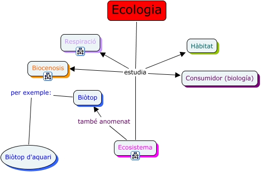 Este Cmap, tiene información relacionada con: ecologia, Ecosistema també anomenat Biòtop, Ecologia estudia Respiració, Ecologia estudia Consumidor (biología), Ecologia estudia Hàbitat, Ecologia estudia Ecosistema, Ecologia estudia Biocenosis, Biòtop per exemple: Biòtop d'aquari