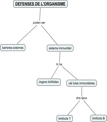 Este Cmap, tiene información relacionada con: defenses de l'organisme, DEFENSES DE L'ORGANISME poden ser barreres externes, sistema immunitàri hi ha òrgans limfòides, sistema immunitàri hi ha cèl·lules immunitàries, DEFENSES DE L'ORGANISME poden ser sistema immunitàri, cèl·lules immunitàries dos tipus limfòcits B, cèl·lules immunitàries dos tipus limfòcits T
