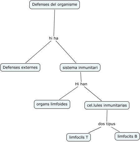 Este Cmap, tiene información relacionada con: Defenses del organisme, sistema inmunitari Hi han organs limfoides, sistema inmunitari Hi han cel.lules inmunitarias, cel.lules inmunitarias dos tipus limfocits B, cel.lules inmunitarias dos tipus limfocils T, Defenses del organisme hi ha Defenses externes, Defenses del organisme hi ha sistema inmunitari