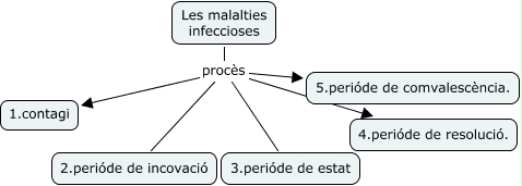 Este Cmap, tiene información relacionada con: procès de una malaltía infecsiosa, Les malalties infeccioses procès 1.contagi, Les malalties infeccioses procès 5.perióde de comvalescència., Les malalties infeccioses procès 2.perióde de incovació, Les malalties infeccioses procès 4.perióde de resolució., Les malalties infeccioses procès 3.perióde de estat