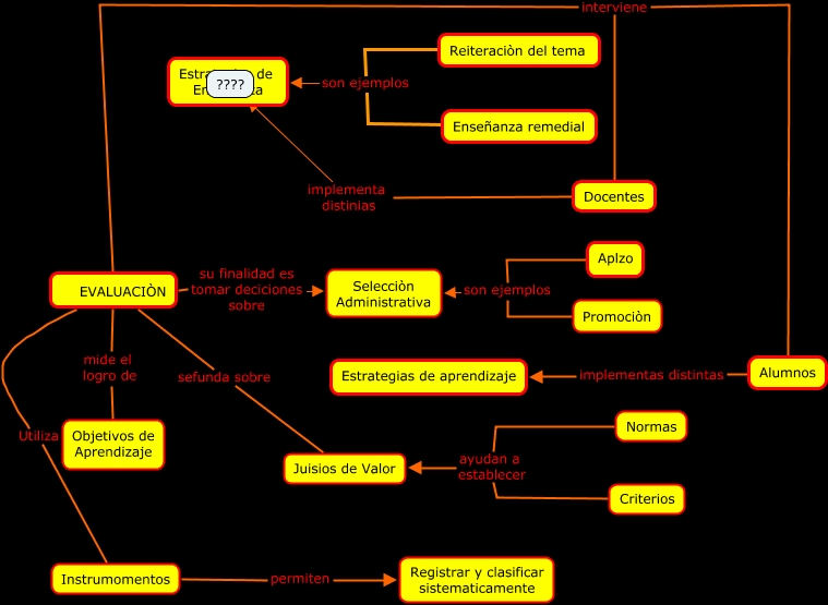 Este Cmap, tiene información relacionada con: PAOLO ABEL WILSER, EVALUACIÒN su finalidad es tomar deciciones sobre Selecciòn Administrativa, Normas ayudan a establecer Juisios de Valor, Instrumomentos permiten Registrar y clasificar sistematicamente, EVALUACIÒN sefunda sobre Juisios de Valor, EVALUACIÒN interviene Docentes, EVALUACIÒN interviene Alumnos, EVALUACIÒN mide el logro de Objetivos de Aprendizaje, Alumnos implementas distintas Estrategias de aprendizaje, Criterios ayudan a establecer Juisios de Valor, Reiteraciòn del tema son ejemplos Estrategias de Enseñanza, Enseñanza remedial son ejemplos Estrategias de Enseñanza, Aplzo son ejemplos Selecciòn Administrativa, Docentes implementa distinias ????, Promociòn son ejemplos Selecciòn Administrativa, EVALUACIÒN Utiliza Instrumomentos