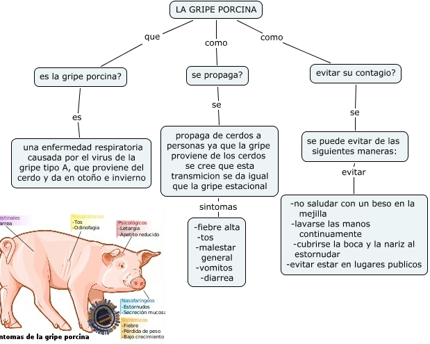 Este Cmap, tiene información relacionada con: NOHELIA Y ROSULA, propaga de cerdos a personas ya que la gripe proviene de los cerdos se cree que esta transmicion se da igual que la gripe estacional sintomas -fiebre alta -tos -malestar general -vomitos -diarrea, evitar su contagio? se se puede evitar de las siguientes maneras:, LA GRIPE PORCINA que es la gripe porcina?, LA GRIPE PORCINA como se propaga?, se propaga? se propaga de cerdos a personas ya que la gripe proviene de los cerdos se cree que esta transmicion se da igual que la gripe estacional, se puede evitar de las siguientes maneras: evitar -no saludar con un beso en la mejilla -lavarse las manos continuamente -cubrirse la boca y la nariz al estornudar -evitar estar en lugares publicos, es la gripe porcina? es una enfermedad respiratoria causada por el virus de la gripe tipo A, que proviene del cerdo y da en otoño e invierno, LA GRIPE PORCINA como evitar su contagio?