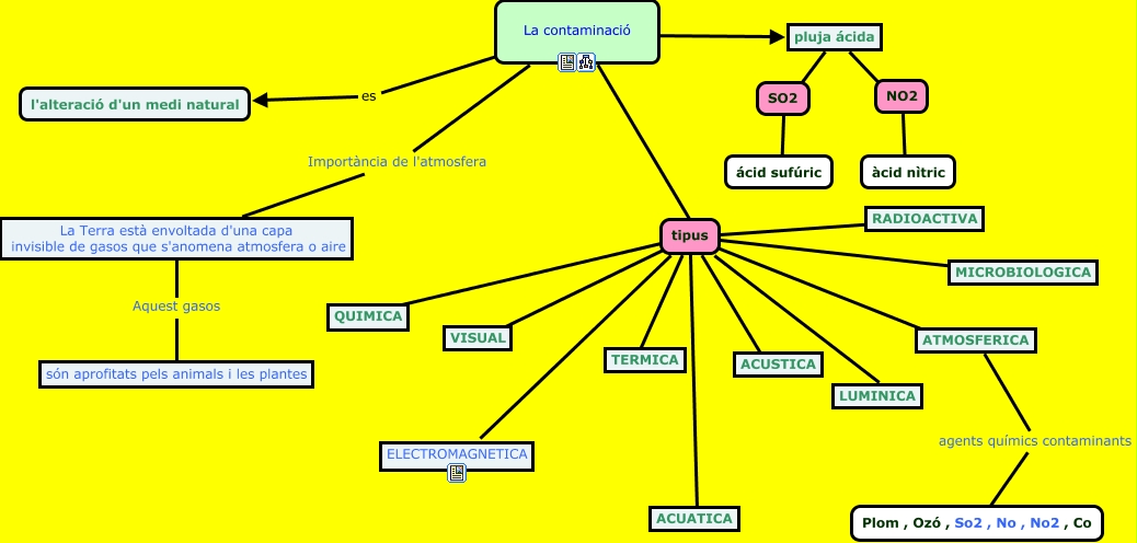 Este mapa conceptual tiene información relacionada a: ecologia 3º, tipus ???? QUIMICA, pluja ácida ???? SO2, tipus ???? ELECTROMAGNETICA, tipus ???? LUMINICA, pluja ácida ???? NO2, SO2 ???? ácid sufúric, La contaminació Importància de l'atmosfera La Terra està envoltada d'una capa invisible de gasos que s'anomena atmosfera o aire, tipus ???? VISUAL, tipus ???? ACUSTICA, tipus ???? TERMICA, NO2 ???? àcid nìtric, La contaminació ???? tipus, La contaminació ???? pluja ácida, tipus ???? ACUATICA, La Terra està envoltada d'una capa invisible de gasos que s'anomena atmosfera o aire Aquest gasos són aprofitats pels animals i les plantes, La contaminació es l'alteració d'un medi natural, tipus ???? ATMOSFERICA, tipus ???? RADIOACTIVA, ATMOSFERICA agents químics contaminants Plom , Ozó , So2 , No , No2 , Co, tipus ???? MICROBIOLOGICA