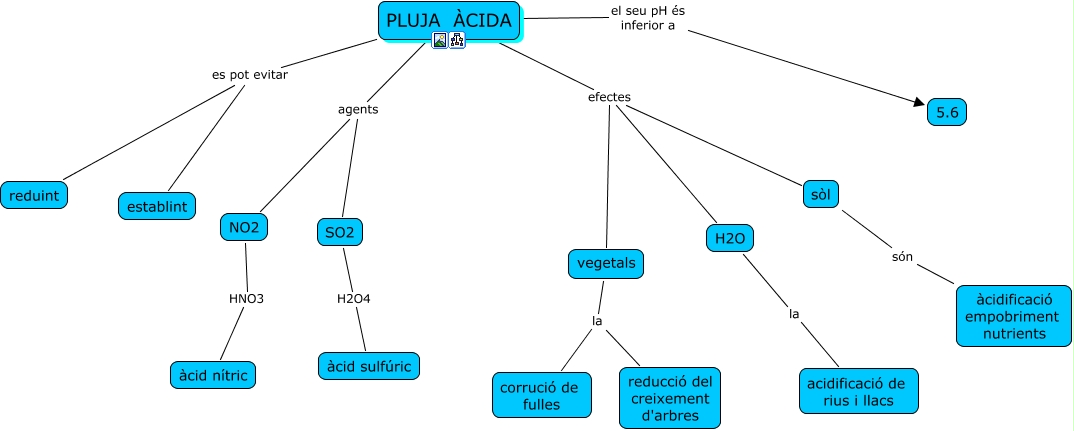 Este Cmap, tiene información relacionada con: PLUJA ÀCIDA, PLUJA ÀCIDA es pot evitar establint, PLUJA ÀCIDA efectes H2O, PLUJA ÀCIDA el seu pH és inferior a 5.6, NO2 HNO3 àcid nítric, PLUJA ÀCIDA agents NO2, PLUJA ÀCIDA es pot evitar reduint, H2O la acidificació de rius i llacs, sòl són àcidificació empobriment nutrients, PLUJA ÀCIDA efectes sòl, vegetals la reducció del creixement d'arbres, SO2 H2O4 àcid sulfúric, PLUJA ÀCIDA efectes vegetals, PLUJA ÀCIDA agents SO2, vegetals la corrució de fulles