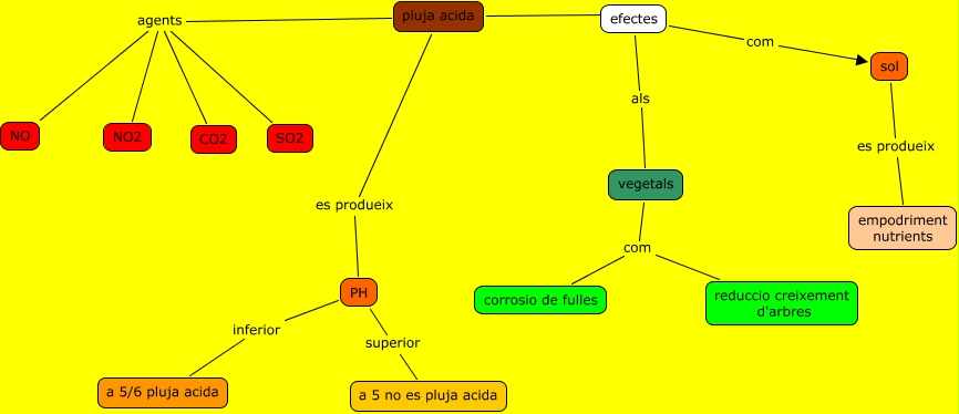 Este Cmap, tiene información relacionada con: pluja acida, PH superior a 5 no es pluja acida, pluja acida es produeix PH, pluja acida agents SO2, pluja acida agents NO2, pluja acida agents CO2, vegetals com corrosio de fulles, sol es produeix empodriment nutrients, efectes als vegetals, vegetals com reduccio creixement d'arbres, PH inferior a 5/6 pluja acida, efectes com sol, pluja acida agents NO, pluja acida efectes