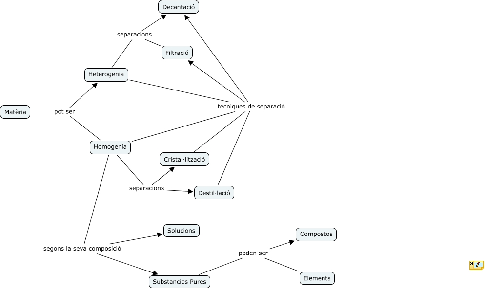 Este Cmap, tiene información relacionada con: Materia, Heterogenia separacions Decantació, Homogenia tecniques de separació Filtració, Homogenia separacions Cristal·lització, Heterogenia separacions Filtració, Substancies Pures poden ser Compostos, Matèria pot ser Heterogenia, Homogenia segons la seva composició Substancies Pures, Heterogenia tecniques de separació Decantació, Matèria pot ser Homogenia, Homogenia tecniques de separació Decantació, Heterogenia tecniques de separació Destil·lació, Substancies Pures poden ser Elements, Homogenia segons la seva composició Solucions, Homogenia tecniques de separació Cristal·lització, Homogenia separacions Destil·lació, Heterogenia tecniques de separació Cristal·lització, Heterogenia tecniques de separació Filtració, Homogenia tecniques de separació Destil·lació
