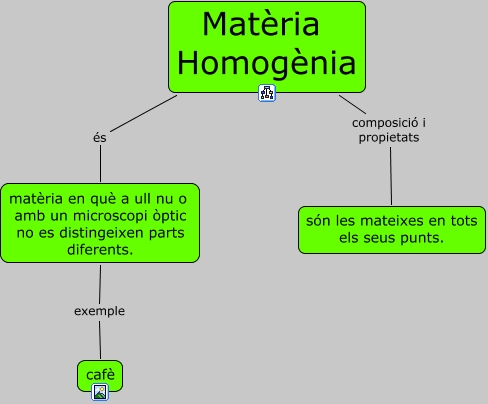 Este Cmap, tiene información relacionada con: matèria homogènia, matèria en què a ull nu o amb un microscopi òptic no es distingeixen parts diferents. exemple cafè, Matèria Homogènia composició i propietats són les mateixes en tots els seus punts., Matèria Homogènia és matèria en què a ull nu o amb un microscopi òptic no es distingeixen parts diferents.