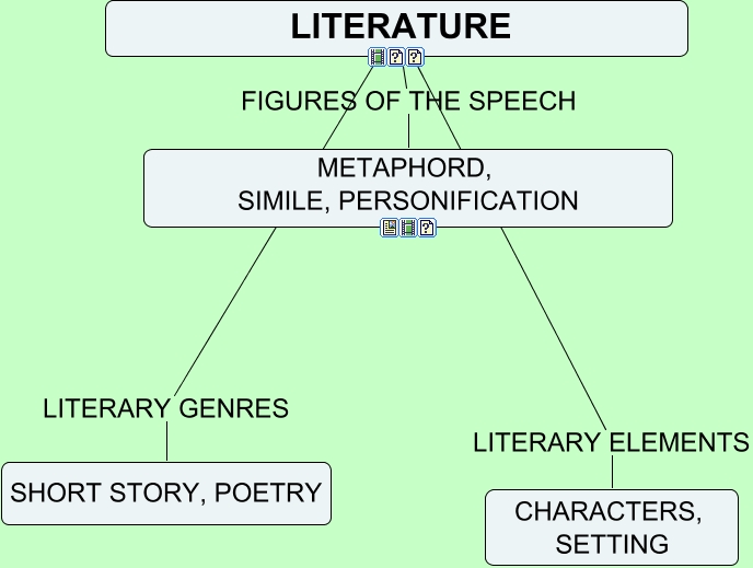 Este mapa conceptual tiene información relacionada a: LITERATURE MAPA, LITERATURE LITERARY GENRES SHORT STORY, POETRY, LITERATURE FIGURES OF THE SPEECH METAPHORD, SIMILE, PERSONIFICATION, LITERATURE LITERARY ELEMENTS CHARACTERS, SETTING