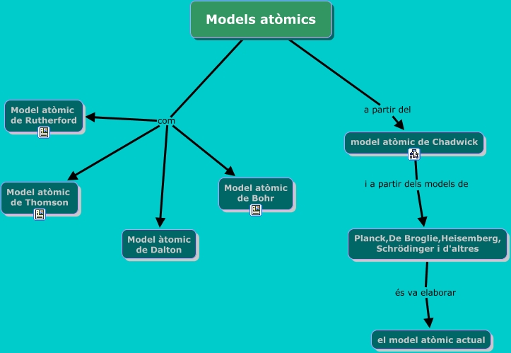 Este Cmap, tiene información relacionada con: Model atòmic de Dalton, Models atòmics a partir del model atòmic de Chadwick, Models atòmics com Model àtomic de Dalton, Models atòmics com Model atòmic de Thomson, Models atòmics com Model atòmic de Rutherford, model atòmic de Chadwick i a partir dels models de Planck,De Broglie,Heisemberg, Schrödinger i d'altres, Models atòmics com Model atòmic de Bohr, Planck,De Broglie,Heisemberg, Schrödinger i d'altres és va elaborar el model atòmic actual