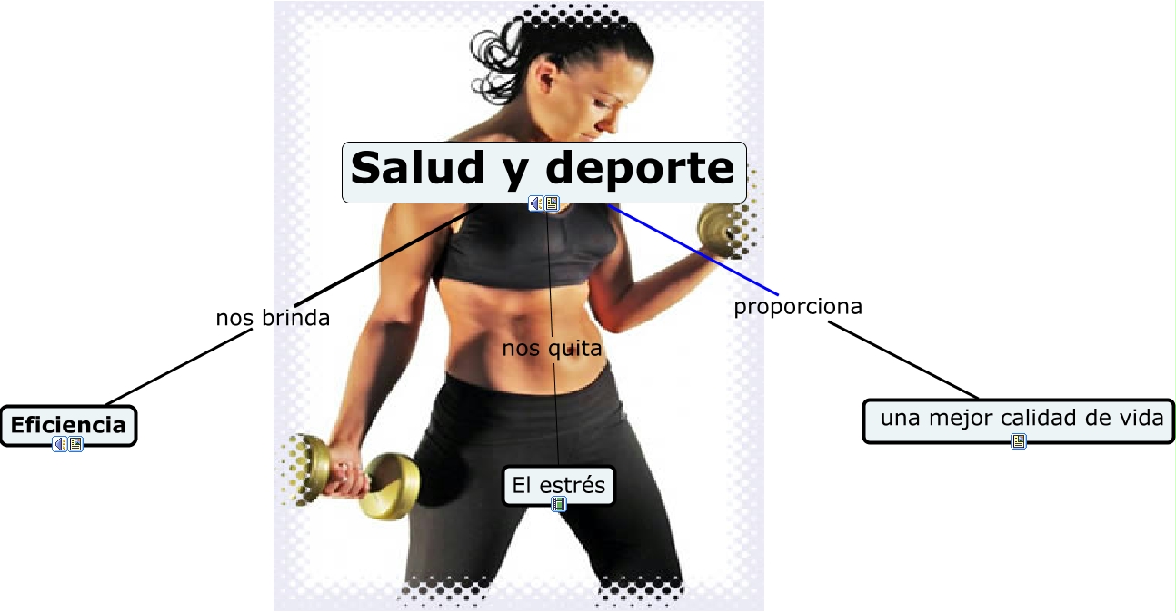 Este mapa conceptual tiene información relacionada a: Sin Título, Salud y deporte nos brinda Eficiencia, Salud y deporte proporciona una mejor calidad de vida, Salud y deporte nos quita El estrés