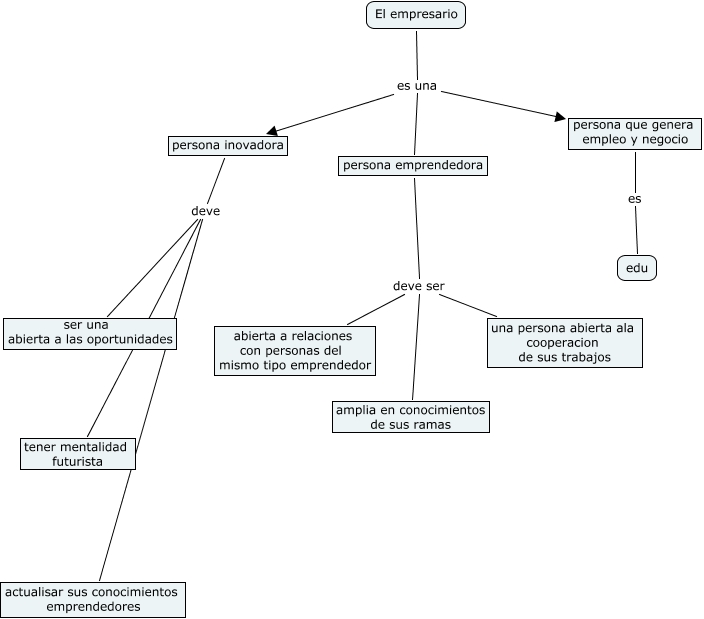 Este Cmap, tiene información relacionada con: emprendedores_carlos_jhosseel_edu, persona inovadora deve ser una abierta a las oportunidades, persona emprendedora deve ser una persona abierta ala cooperacion de sus trabajos, persona emprendedora deve ser abierta a relaciones con personas del mismo tipo emprendedor, El empresario es una persona inovadora, persona que genera empleo y negocio es edu, El empresario es una persona que genera empleo y negocio, persona inovadora deve tener mentalidad futurista, persona emprendedora deve ser amplia en conocimientos de sus ramas, persona inovadora deve actualisar sus conocimientos emprendedores, El empresario es una persona emprendedora