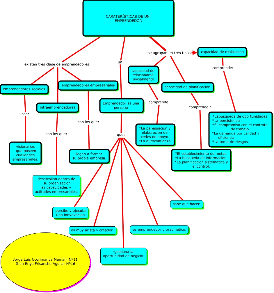 Este Cmap, tiene información relacionada con: Emprendedores_jorge_jhon, capacidad de realizacion comprende: *Labusqueda de oportunidades. *La persistencia. *El compromiso con el contrato de trabajo. *La demanda por calidad y eficiencia *La toma de riesgos., CARATERÍSTICAS DE UN EMPRENDEDOR un Emprendedor es una persona, Emprendedor es una persona que: sabe que hacer., emprendedores sociales son: visionarios que poseen cualidades empresariales., intraemprendedores son los que: desarrollan dentro de su organizacion las capacidades y actitudes empresariales., CARATERÍSTICAS DE UN EMPRENDEDOR existen tres clase de emprendedores: emprendedores sociales, CARATERÍSTICAS DE UN EMPRENDEDOR existen tres clase de emprendedores: emprendedores empresariales, capacidad de planificacion comprende : *El establecimiento de metas. *La busqueda de informacion. *La planificacion sistematica y el control., Emprendedor es una persona que: es muy arista y creador., Emprendedor es una persona que: es emprendedor y pracmático., capacidad de relacionarse socialmente comprende: *La peresuacion y elaboracion de redes de apoyo. *La autoconfianza., CARATERÍSTICAS DE UN EMPRENDEDOR existen tres clase de emprendedores: intraemprendedores, CARATERÍSTICAS DE UN EMPRENDEDOR se agrupan en tres tipos capacidad de planificacion, CARATERÍSTICAS DE UN EMPRENDEDOR se agrupan en tres tipos capacidad de relacionarse socialmente, emprendedores empresariales son los que: llegan a formar su propia empresa., Emprendedor es una persona que: -gestiona la oportunidad de negicio., Emprendedor es una persona que: percibe y ejecuta una innvovacion., CARATERÍSTICAS DE UN EMPRENDEDOR se agrupan en tres tipos capacidad de realizacion